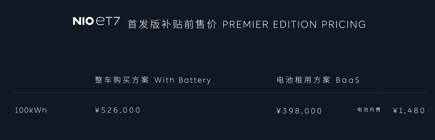其補貼前起售價為44.8萬元,BaaS方案補貼前起售價37.8萬元;首發(fā)版補貼前售價52.6萬元,BaaS方案補貼前售價39.8萬元,即日起于蔚來App開放預訂,預計在2022年一季度開啟交付。