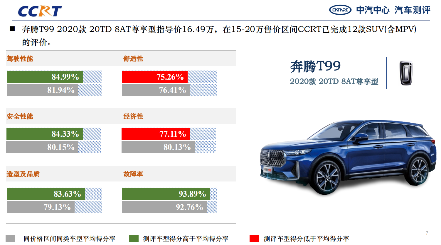 在測試規(guī)程解讀環(huán)節(jié),中汽測評專家通過車型表現(xiàn)類比進行了多維度延展。以同屬中大型SUV的北京X7和奔騰T99為例,深度對比分析了兩款車型所呈現(xiàn)出的不同特征。