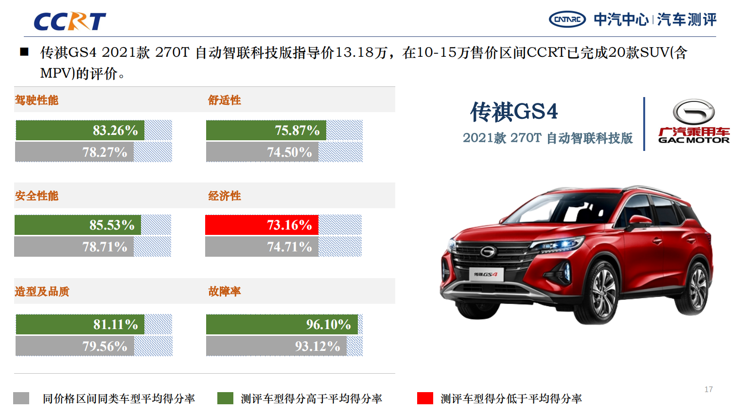 北京X7行保腿型測試結果突出,奔騰T99、傳祺GS4在AEB測試中均表現(xiàn)優(yōu)秀,同時傳祺GS4碰撞安全性也不錯。