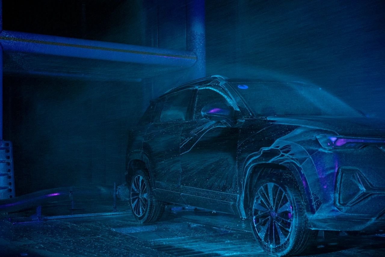 當(dāng)風(fēng)洞開啟時(shí),風(fēng)速將由0km/h逐漸增至120km/h,并將通過加入水流、熒光劑等措施,模擬車輛在60L/min級(jí)暴雨中的高速行駛狀態(tài),同時(shí)可直觀體驗(yàn)在暴雨?duì)顟B(tài)下,水流經(jīng)過車體時(shí)的流線,以及車艙內(nèi)整體的靜謐性以及暴雨中駕駛員、乘客的視野感受。