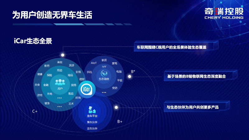 從產業(yè)政策來看,iCar生態(tài)作為奇瑞打造的跨界互融服務體系,順應了數(shù)字中國時代發(fā)展要求,通過實現(xiàn)破圈生態(tài),有助于實現(xiàn)奇瑞全球化戰(zhàn)略進一步發(fā)展。從汽車生態(tài)行業(yè)發(fā)展來看,搭載奇瑞核心技術的iCar生態(tài),將用車鏈接每個人的全域生活場景,打造智能生活的共生共態(tài),推動行業(yè)以及社會數(shù)字化進步。