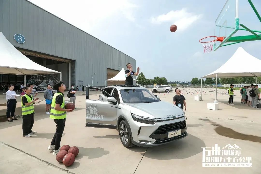經(jīng)過高溫艙的考驗過后,現(xiàn)場北京汽車還設(shè)置了天窗投籃、雙純平空間裝載、全息盲駕3個游戲互動環(huán)節(jié),分別展現(xiàn)北京X7車內(nèi)空間、大天窗以及裝載的大空間,還有全景影像的科技。