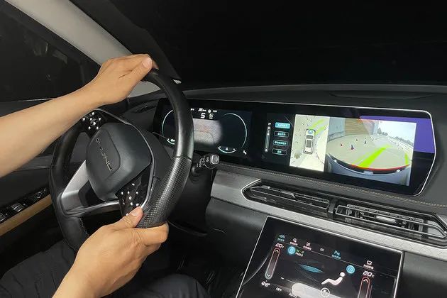 最后一個環(huán)節(jié)則展示了北京X7在科技配置上的配備。所有車窗均被黑幕遮擋,只能依靠中控屏的全景影像來駛出障礙。不過在這樣的情況下,依舊能夠順利的駛出障礙物。