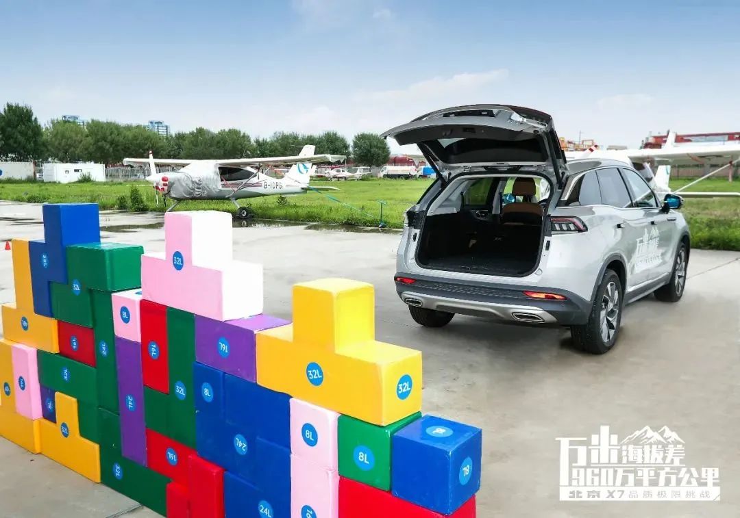 而在雙純平空間裝載環(huán)節(jié)上,憑借著北京X7的2800mm軸距以及可以說是同級最大的4710*1892*1715mm車身尺寸,X7在放倒后排座椅后可獲得高達(dá)1000L的純平空間,相當(dāng)于40個24寸登機(jī)箱的容積?;顒蝇F(xiàn)場,稍加調(diào)整就能將一旁擺放好近1000L的積木塊放入車內(nèi)。