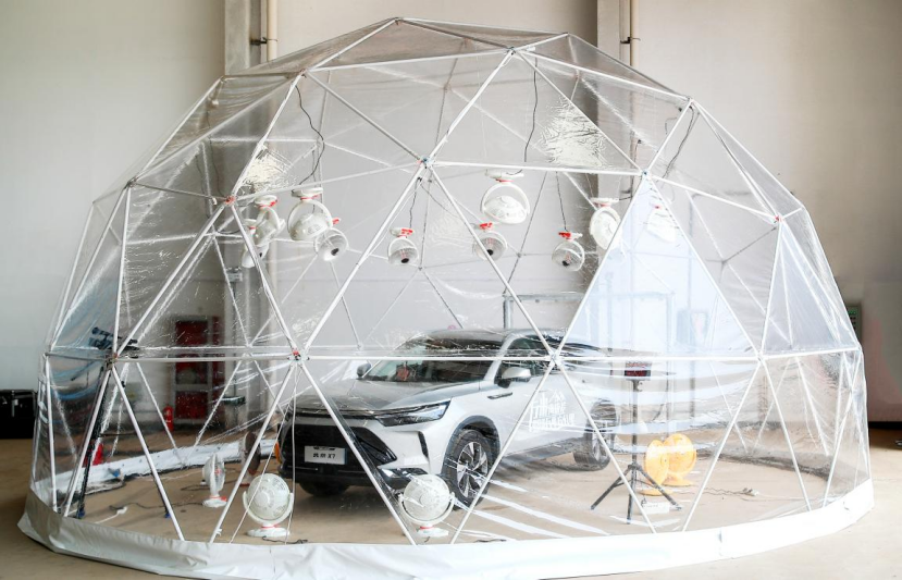 為了檢驗高溫下的產(chǎn)品品質(zhì),在這次挑戰(zhàn)之旅活動的現(xiàn)場,還進(jìn)行了一項模擬在高溫環(huán)境下長時間停車,之后通過遠(yuǎn)程啟動車輛并開啟空調(diào)對車內(nèi)進(jìn)行降溫的實驗。北京汽車專門打造了一個模擬吐魯番極熱環(huán)境的高溫艙,艙內(nèi)溫度高達(dá)70℃。