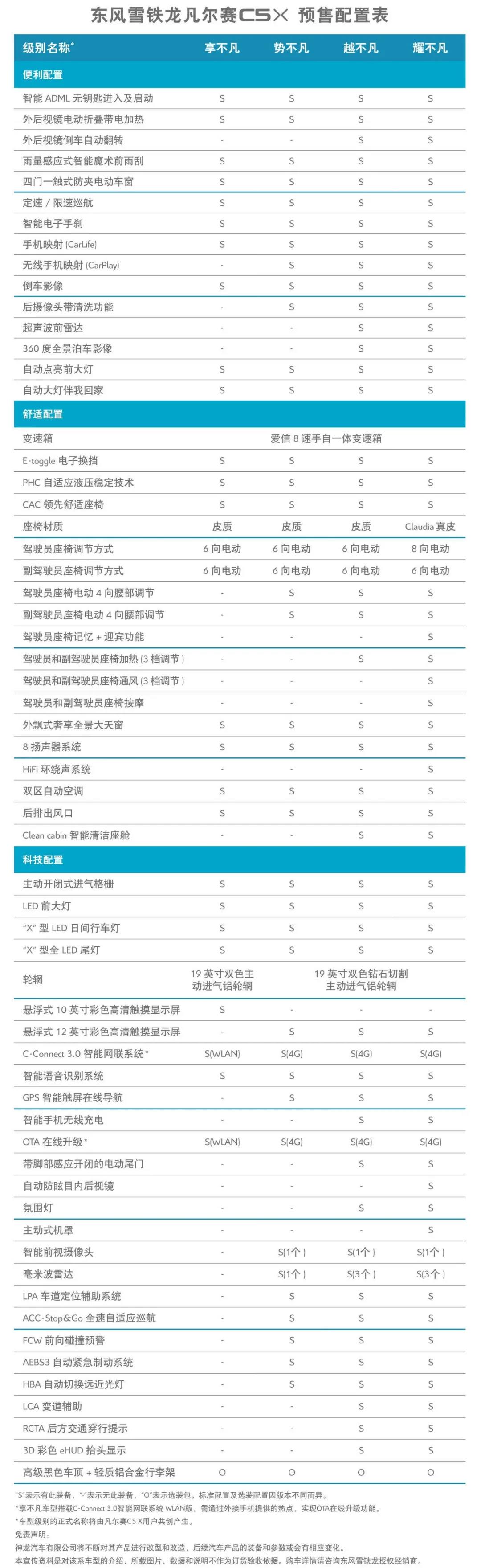 但是決定車型銷量還是要靠實力說話,而此次公布預售價的凡爾賽C5 X,也同時公布全新車型詳細參數(shù)配置表。在低預售價格的背后,新車卻在配置上相當“豪氣”,真正擔起“凡爾賽”的名號。