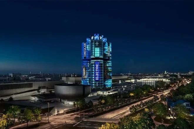 寶馬更是帶來了一個(gè)更加神乎其神的BMW i循環(huán)概念車,寶馬本次車展的主題如這個(gè)概念車其名,便是循環(huán)經(jīng)濟(jì)。不僅如此,在主場作戰(zhàn)的寶馬,還利用地理優(yōu)勢在四缸大廈本部的燈光秀上展示了寶馬集團(tuán)如何在整個(gè)汽車生命周期的減碳舉措,以實(shí)現(xiàn)氣候中和及循環(huán)經(jīng)濟(jì):從減少原材料提取時(shí)對(duì)生態(tài)的影響,節(jié)能生產(chǎn)到客戶使用階段最大效率化,以及在產(chǎn)品終期的循環(huán)利用。