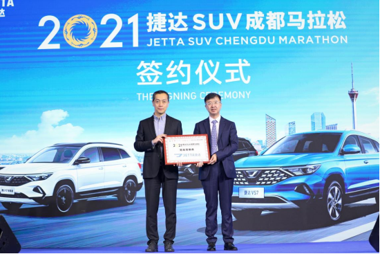 汽車信息網(wǎng)10月20日訊 今日,2021捷達(dá)SUV成都馬拉松簽約儀式在成都召開,正式官宣捷達(dá)SUV冠名2021成都馬拉松,成都市體育局機(jī)關(guān)黨委書記楊慎微先生、萬達(dá)文化集團(tuán)副總裁兼萬達(dá)體育中國公司總裁高益民先生,一汽-大眾捷達(dá)品牌&成都分公司總經(jīng)理 Rasmus Wiedmann先生,一汽-大眾成都分公司黨委副書記、工會主席付國政先生等領(lǐng)導(dǎo)嘉賓一起見證第五屆成都馬拉松正式起航。