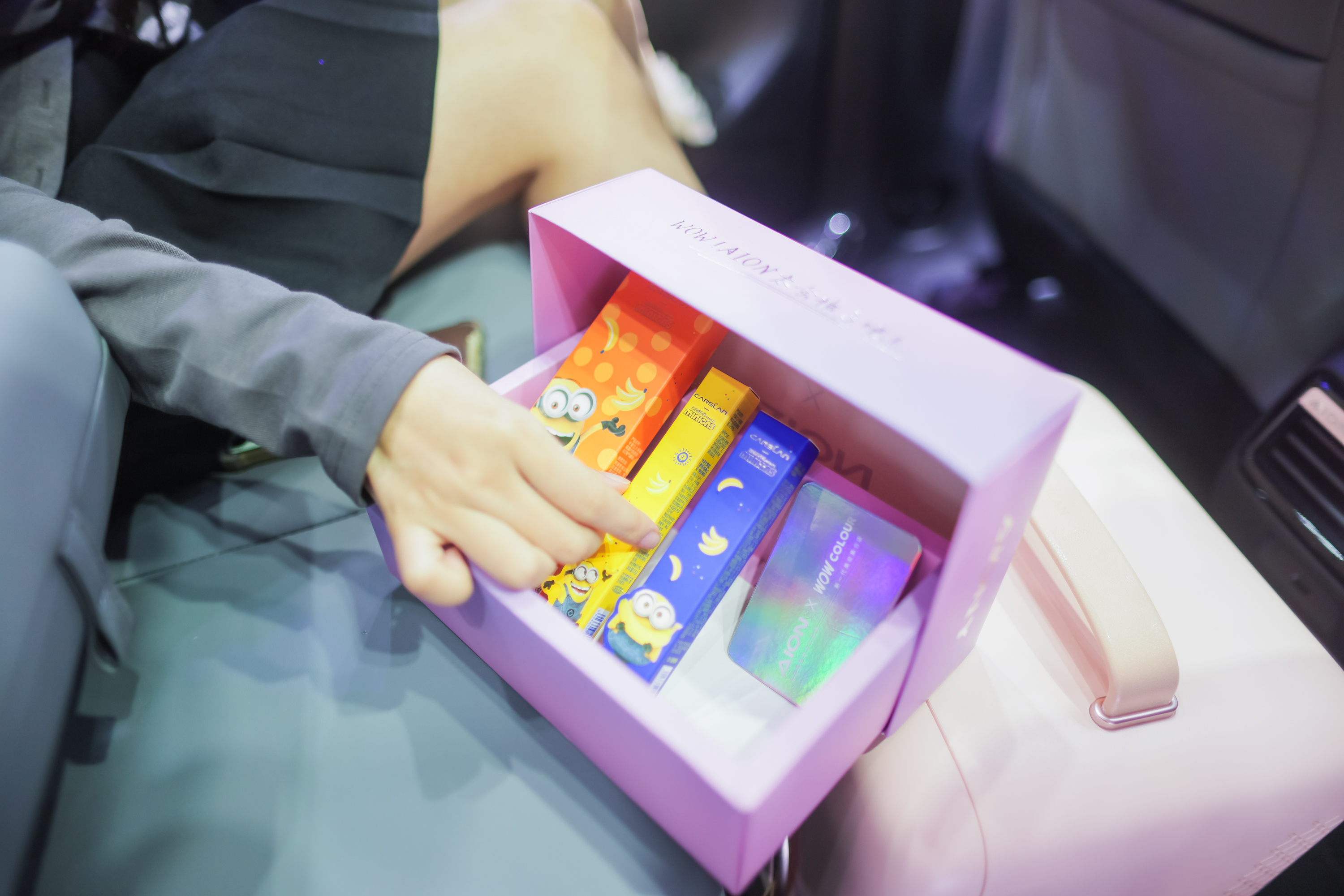 在當(dāng)天的活動(dòng)現(xiàn)場(chǎng),AION Y的展區(qū)被打造成了一個(gè)擁有潮流設(shè)計(jì)風(fēng)格的時(shí)尚美妝專區(qū),陳列著各種新潮的化妝品,聯(lián)名美妝禮盒在其中備受矚目。