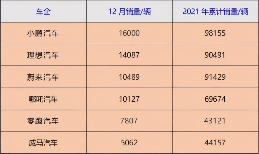從2021年12月的交付量排行榜來看,哪吒、零跑和威馬也都開足馬力。
