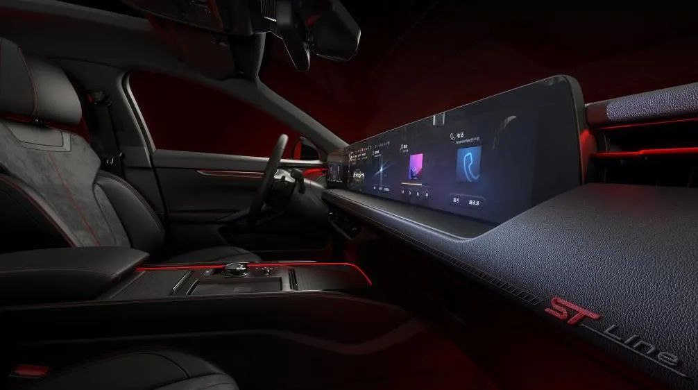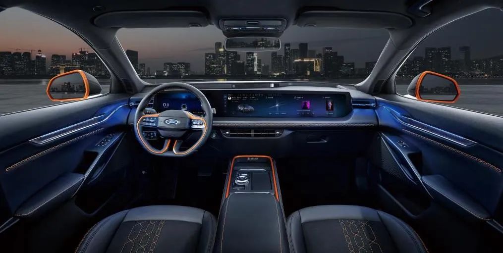 因此,福特工程師便做出了以雙聯屏代替三聯屏的大膽的決策,也就是儀表盤和中控屏整合在一起,中控屏橫跨到主副駕。而事實也證明,這塊超廣域巨幅屏就是EVOS智能座艙最大的優(yōu)勢之一。