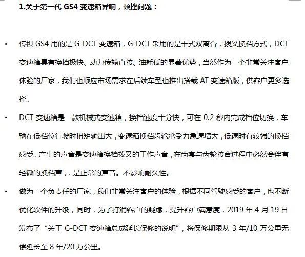 針對(duì)“汽扯扒談”報(bào)道GS4兩方面問(wèn)題,傳祺官方也進(jìn)行專門回復(fù)。相信之前投訴過(guò)相關(guān)問(wèn)題的車主,也得到過(guò)相關(guān)問(wèn)題的回復(fù)。雖然廠家主動(dòng)溝通的態(tài)度值得肯定,不過(guò)回復(fù)的內(nèi)容種種說(shuō)辭,也讓我們更深刻認(rèn)識(shí)到,作為車主面對(duì)廠家以各種理由回避車型問(wèn)題的憤怒與無(wú)奈…