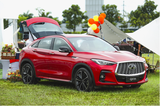 當(dāng)晚,下半年將上市的“先鋒魅力豪華轎跑SUV”英菲尼迪QX55也同時(shí)亮相,致敬FX經(jīng)典的coupe張力造型,搭配大膽撩人的紅色熱感格調(diào),與無酒精雞尾酒品鑒區(qū)相得益彰。