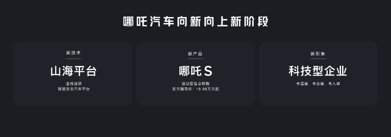新技術(shù)、新產(chǎn)品,力鼎哪吒汽車向新、向上。堅持“為人民造車”,哪吒汽車飽和式投入“科技平權(quán)”,2021年發(fā)布了技術(shù)“超級航空母艦”——全棧自研的智能汽車安全平臺“山海平臺”。今年在上市2022款哪吒U、哪吒V后,哪吒汽車緊接著上市了山海平臺的第一款重磅產(chǎn)品——哪吒S,代表山海平臺的一系列領(lǐng)先的硬核科技首次落地,哪吒汽車隨之正式入駐20萬元-30萬元級別的主流市場。B+級“運(yùn)動型智享轎跑”哪吒S同時集齊了超酷外觀、超強(qiáng)性能、科技座艙、人文關(guān)懷、L4級智駕系統(tǒng)、高安全、高可靠性,售價19.98萬元-33.88萬元,成為“100萬元以內(nèi)最好的轎跑”。
