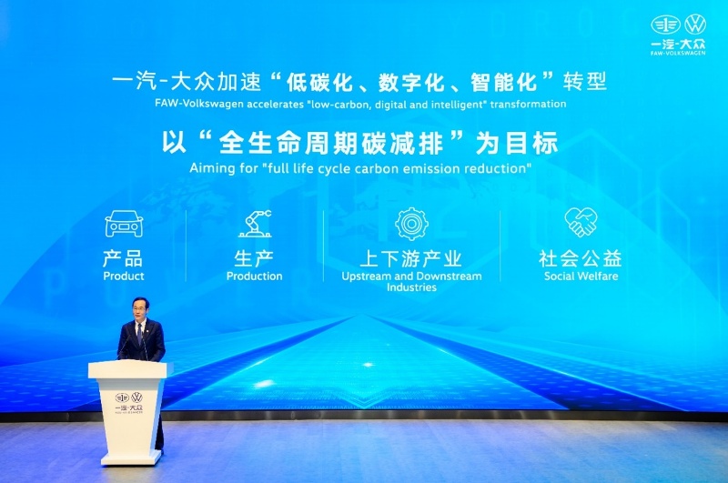 “近年來,在國家和產業(yè)一系列‘雙碳’戰(zhàn)略的驅動下,作為能源依賴性強、工業(yè)支撐作用明顯的汽車產業(yè),亟需走出一條綠色、可持續(xù)的變革之路”,一汽-大眾董事、黨委書記、總經(jīng)理潘占福表示,“肩承產業(yè)使命,一汽-大眾正在加速‘低碳化、數(shù)字化、智能化’的轉型,以‘全生命周期碳減排’為目標,從產品、生產、上下游產業(yè)、社會公益等方面,腳踏實地的積極踐行綠色發(fā)展的承諾。”