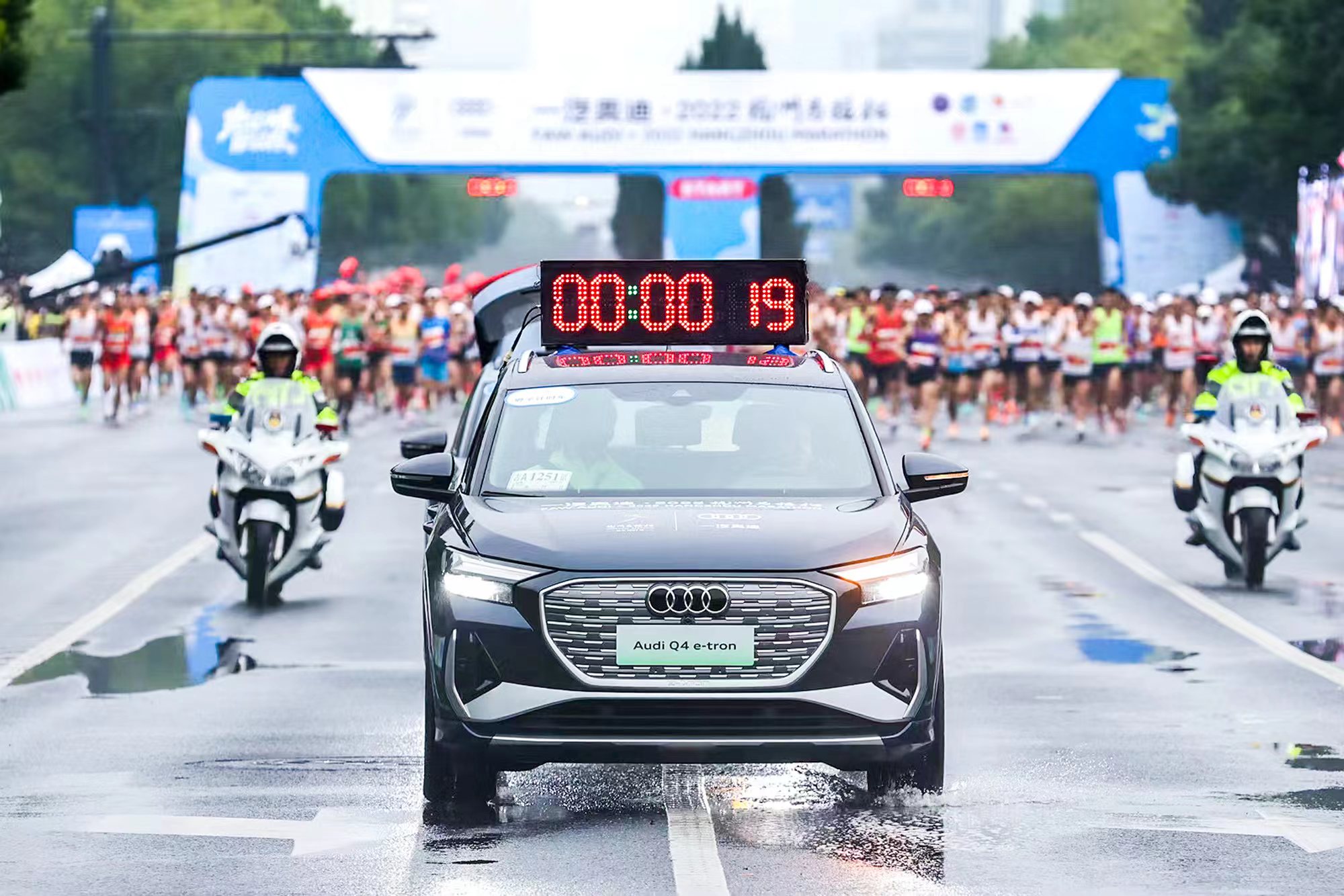 汽車信息網(wǎng)11月21日訊 近日,“一汽奧迪·2022杭州馬拉松”在杭州黃龍?bào)w育中心廣場鳴槍開跑。延續(xù)“跑過風(fēng)景跑過你”這一主題,約3.5萬名選手參加全程馬拉松、半程馬拉松、健康跑、情侶跑和家庭跑五個組別的比賽。隨著一聲發(fā)令槍響,上萬名參賽選手沖向闊別已久的賽道,跟隨前方開路的賽事導(dǎo)航車奧迪 Q4 e-tron,在速度和激情中奔赴目的地。