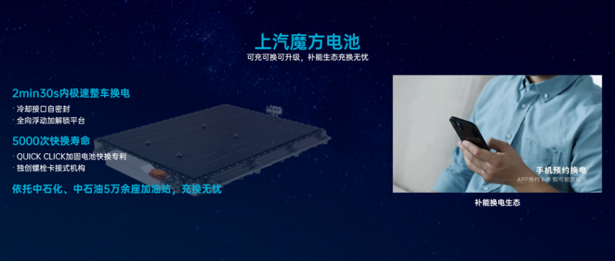 超薄純平的上汽“魔方電池”,突破“立式”電芯布局的局限性,創(chuàng)造性打造“臥式”電芯布局,能夠?qū)崿F(xiàn)超高集成度、超長壽命、“零熱失控”安全防護三大行業(yè)領(lǐng)先優(yōu)勢,并且實現(xiàn)了“可充可換可升級”的補能理念,讓“一個電池包滿足所有訴求”,使用魔方電池的車輛可以在短時間內(nèi)完成換電操作。