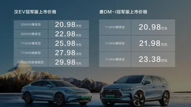 售20.98萬元起,比亞迪漢唐雙旗艦冠軍版上市
