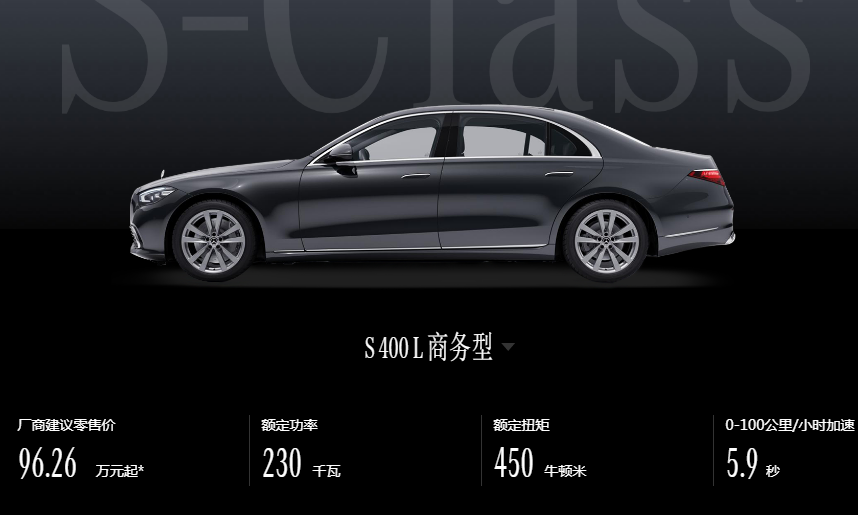 新款奔馳S級現(xiàn)已正式上市,官方指導(dǎo)價96.26萬元起。新款奔馳S級在官網(wǎng)僅展示了S400 L商務(wù)型、S400 L豪華型以及S 450 L 4MATIC共3款車型,3.0T發(fā)動機的S 500 L 4MATIC車型將不再供應(yīng)。值得一提的是,新款奔馳S級的指導(dǎo)價有所上漲,其中S400 L商務(wù)型由94.72萬元調(diào)整為96.26萬元,S400 L豪華型的售價則從107.85萬元變更為110.68萬元,S 450 L 4MATIC的指導(dǎo)價從128.45萬元上調(diào)至130.26萬元。