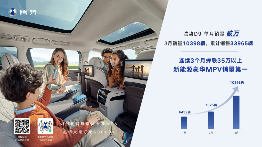 騰勢D9在3月份的銷量破萬,成交均價達41.5萬元