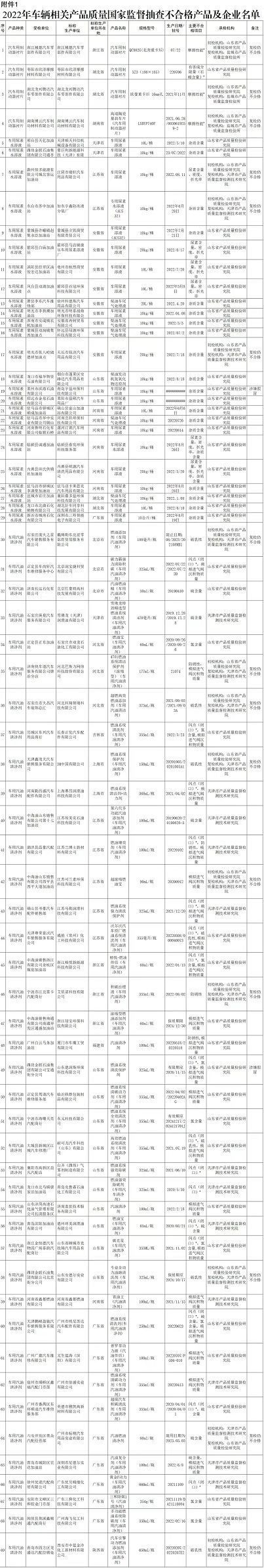 69家企業(yè)的車輛相關(guān)產(chǎn)品不合格!市場監(jiān)管總局通報名單