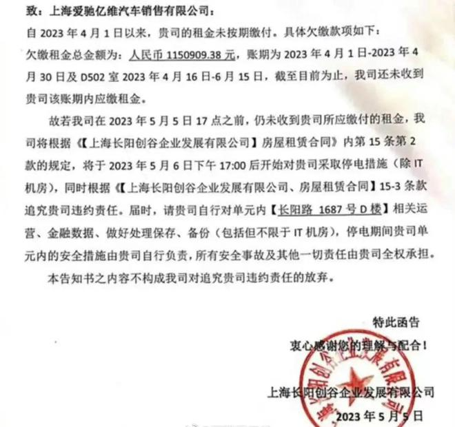 不僅如此,由于沒(méi)有資金繳納辦公室房租,愛(ài)馳汽車(chē)位于上海長(zhǎng)陽(yáng)創(chuàng)谷的辦公室已經(jīng)被業(yè)主收回,愛(ài)馳汽車(chē)要求員工在家辦公。此外,愛(ài)馳汽車(chē)App已經(jīng)無(wú)法正常使用,對(duì)于已購(gòu)車(chē)車(chē)主的用車(chē)和售后都將產(chǎn)生不小的影響。