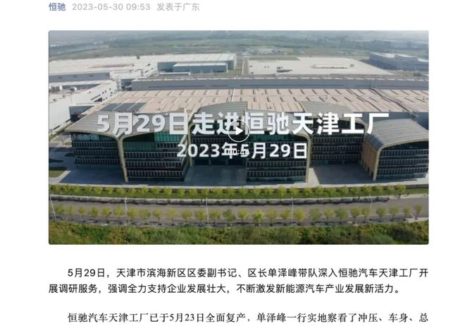 5月30日,官方發(fā)布公告,稱天津市濱海新區(qū)區(qū)委副書(shū)記、區(qū)長(zhǎng)單澤峰于29日,帶隊(duì)深入恒馳汽車天津工廠開(kāi)展調(diào)研服務(wù)。據(jù)了解,該工廠已在7天前全面復(fù)產(chǎn),目前有上千名工人緊張有序地忙碌著,以保證不間斷生產(chǎn)。