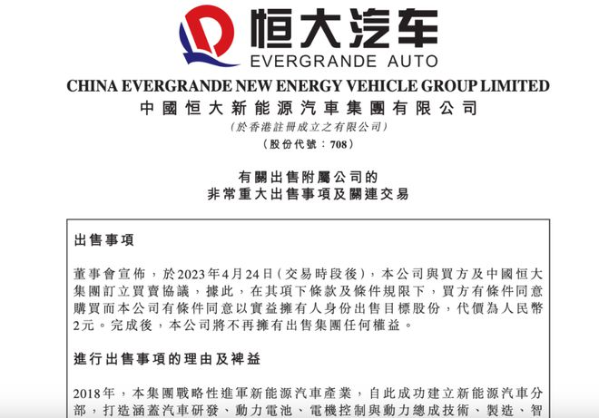 為加大融資機(jī)率,4月24日晚間,中國(guó)恒大和恒大汽車在港交所同時(shí)發(fā)布公告,以2元的價(jià)格將恒大汽車旗下47個(gè)住宅及物業(yè)發(fā)展項(xiàng)目賣給了恒大集團(tuán)。而這47個(gè)住宅及物業(yè)發(fā)展項(xiàng)目,最早可追溯到恒大汽車發(fā)展早期,當(dāng)時(shí)恒大集團(tuán)為推動(dòng)恒大汽車上市,將恒大健康集團(tuán)旗下的養(yǎng)生地產(chǎn)項(xiàng)目打包注入了恒大汽車,港股上市公司恒大健康也因此改名為恒大汽車。