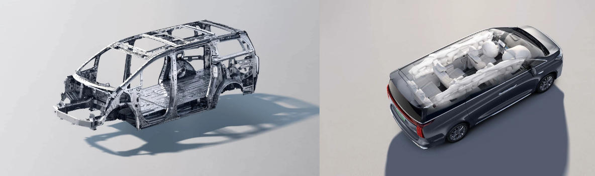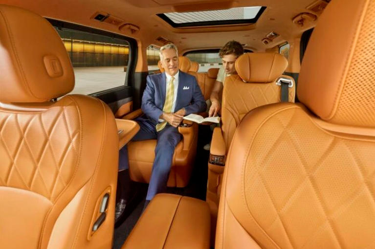 車內(nèi)配置強調(diào)豪華與智能。包括零重力座椅(帶按摩功能)、全溫區(qū)冰箱、智能大屏及多模態(tài)交互系統(tǒng)。提供三種座椅布局:2+2四座、2+2+2六座、2+2+3七座,其中四座版配備隔斷設(shè)計與后排巨幕電視。