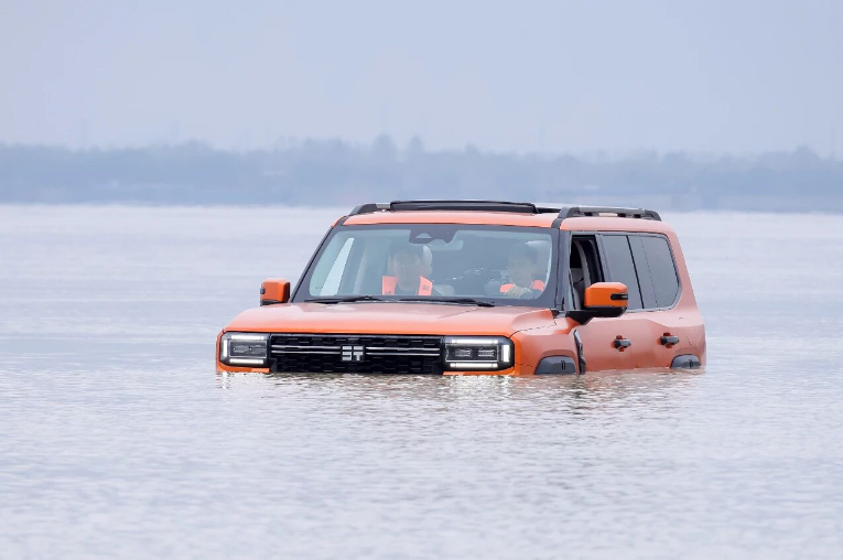更令人驚嘆的是,G700打破了越野車與水互斥的定律。通過行業(yè)領(lǐng)先的密封工藝和IP68級防水系統(tǒng),G700實現(xiàn)了970mm的最大涉水深度。這還不是全部——在加裝推進(jìn)器后,G700甚至成功橫渡長江,用時僅22分鐘,創(chuàng)造了人類歷史上首次越野車橫渡長江的壯舉。