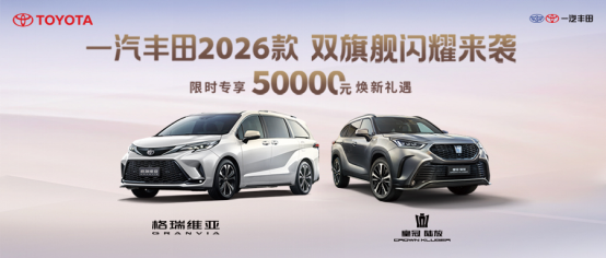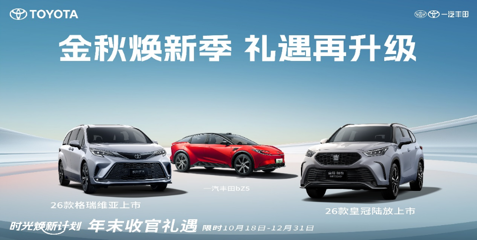 這個(gè)金秋,一汽豐田以誠(chéng)意大禮和兩款重磅車型的煥新上市,將先進(jìn)科技與人文關(guān)懷融入到用戶生活的每個(gè)細(xì)節(jié),為用戶提供了美好出行的新想象。誠(chéng)如2026款格瑞維亞的口號(hào),一汽豐田也正與用戶,從我們的家到更好的家,一起創(chuàng)造美好,一起駛向更值得期待的新遠(yuǎn)方。