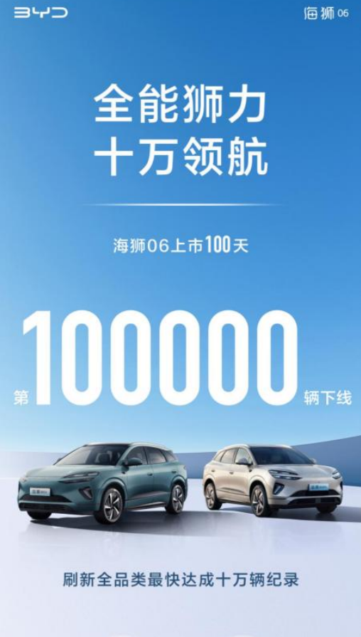 十萬輛,僅僅是海獅06輝煌征程的第一個堅實注腳,但絕非終點。作為比亞迪海洋網(wǎng)的核心戰(zhàn)力,海獅06將繼續(xù)承載著更多消費者的信賴與期待,破浪前行。它將以更具價值、更具魅力的新能源出行體驗,持續(xù)推動中國智造向上突破,書寫屬于中國汽車的傳奇新篇!