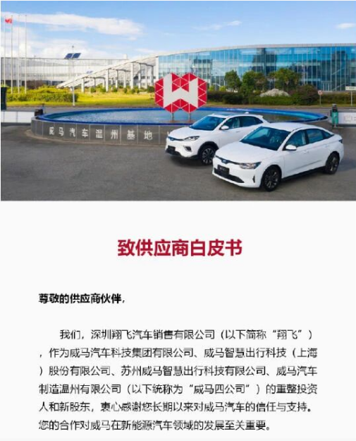 到了今年9月初,翔飛汽車發(fā)布了《致供應(yīng)商白皮書》,官宣了威馬的“復(fù)活”計(jì)劃。這份白皮書展現(xiàn)了接管者的勃勃雄心:2025年復(fù)產(chǎn)EX5、E5,爭取實(shí)現(xiàn)產(chǎn)銷2萬輛;布局泰國KD工廠,開拓東南亞和中東市場。