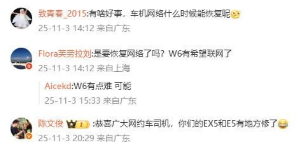 然而,沒有跡象表明威馬已解決老車主的核心訴求——恢復(fù)車機(jī)網(wǎng)絡(luò)和手機(jī)APP服務(wù)。一位網(wǎng)友在威馬官方動(dòng)態(tài)下的評(píng)論一針見血:“有啥好事,先把車機(jī)網(wǎng)絡(luò)和手機(jī)APP恢復(fù)了吧?”