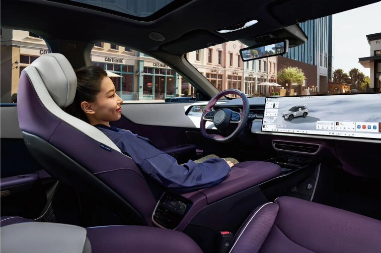 同時,EZ-60打破了新能源中型SUV“千人一面”的同質(zhì)化造型設(shè)計,用「魂動」美學(xué)打造出獨特的靈魂與韻律。百萬級的精工曲面、雙色懸浮車頂、星云紫車漆,合力詮釋出觸動人心的輕奢感官愉悅。
