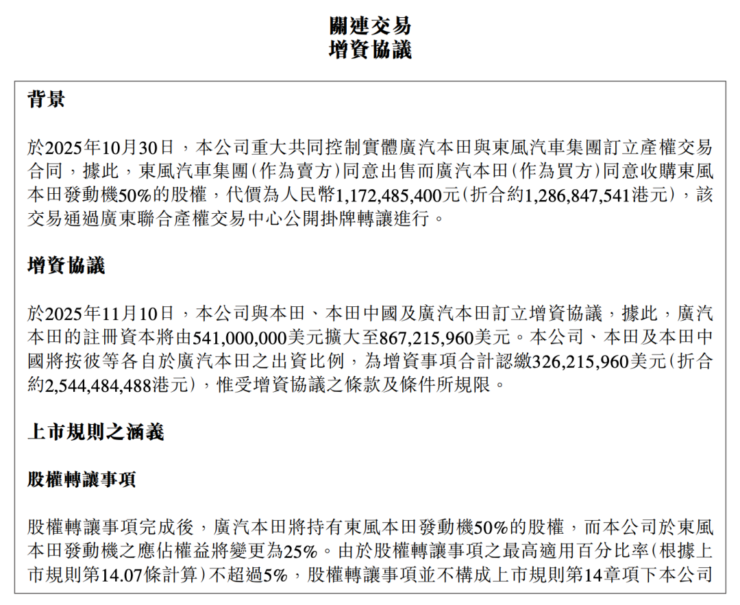 交易完成后,廣汽集團、本田及本田中國維持了50:40:10的持股比例不變,保持了合資公司股權(quán)結(jié)構(gòu)的穩(wěn)定性,同時實現(xiàn)了廣汽本田對東風(fēng)本田發(fā)動機的100%控股。