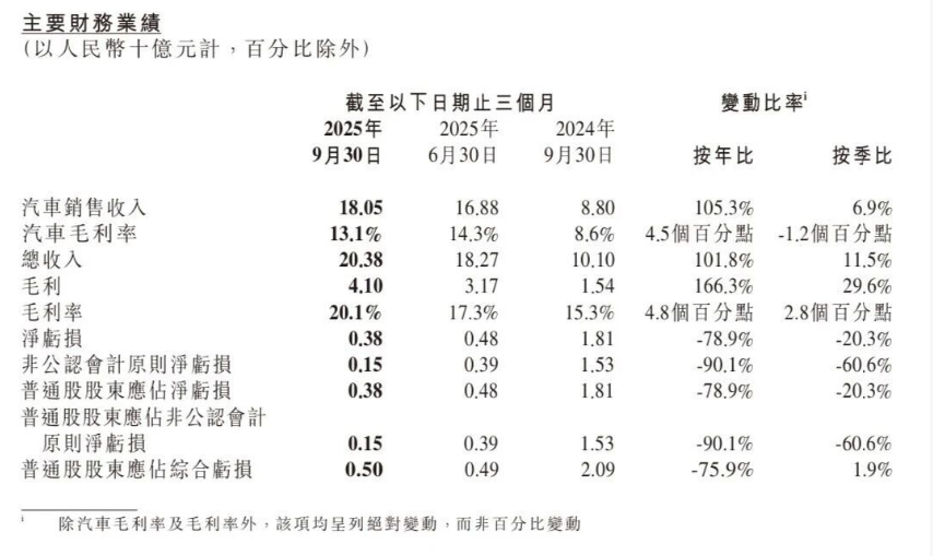 小鵬汽車副董事長及聯(lián)席總裁顧宏地博士表示:“隨著有效的成本控制和技術(shù)研發(fā)相關(guān)的收入釋放出更大的潛力,我們的公司綜合毛利率在第三季度首次突破20%。”
