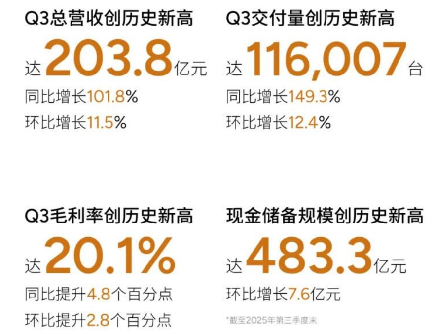 截至2025年9月30日,小鵬汽車現(xiàn)金及現(xiàn)金等價(jià)物、受限制現(xiàn)金、短期投資及定期存款達(dá)到483.3億元,創(chuàng)歷史新高,較上半年末凈增約7.6億元。充裕的現(xiàn)金儲備為小鵬汽車未來的技術(shù)研發(fā)和市場擴(kuò)張?zhí)峁┝顺渥銖椝帯?/span>