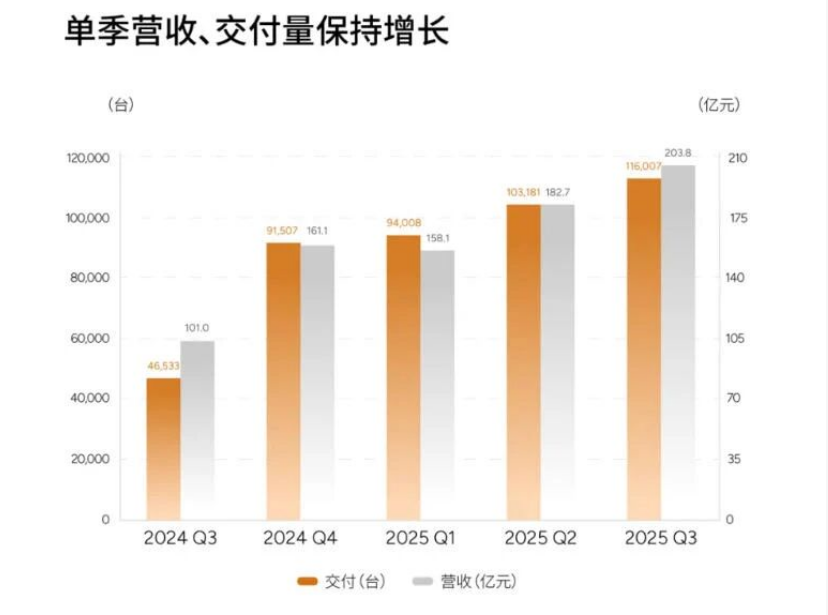 盈利能力改善的背后是交付量的持續(xù)攀升。2025年第三季度,小鵬汽車總交付達(dá)到116,007臺智能電動(dòng)汽車,同比增長149.3%,環(huán)比增長12.4%,創(chuàng)下季度交付量新高。這一增速遠(yuǎn)超行業(yè)平均水平,顯示出小鵬汽車在激烈市場競爭中的獨(dú)特吸引力。