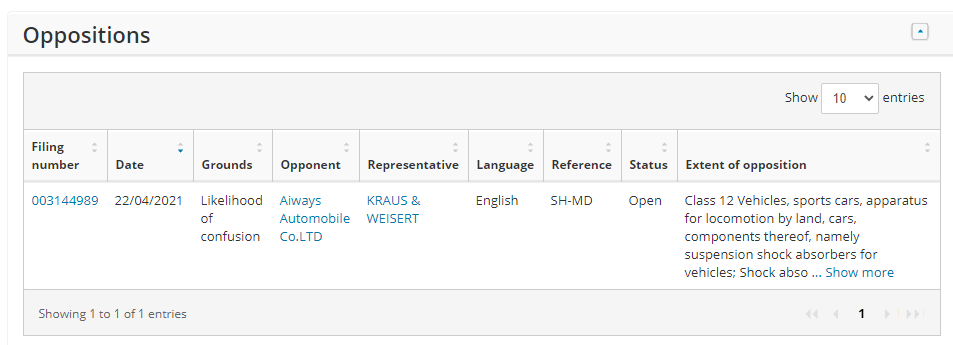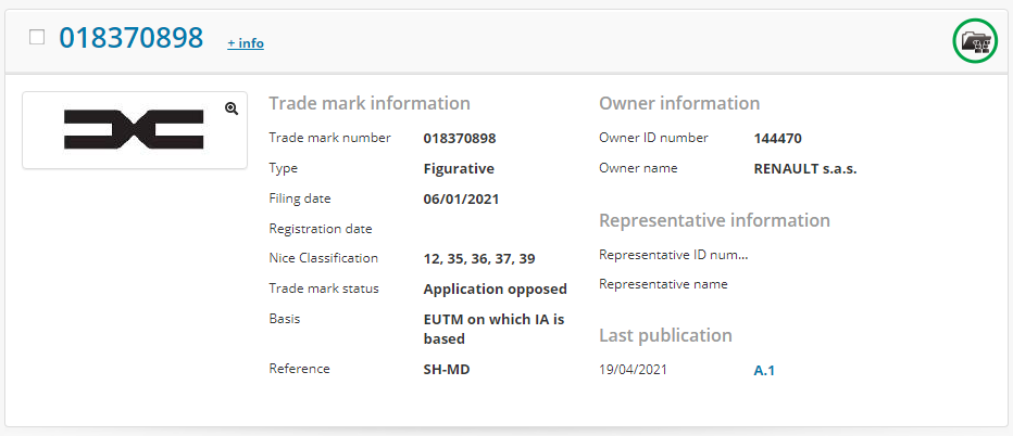 目前,根據(jù)“汽扯扒談”從歐盟知識(shí)產(chǎn)權(quán)局的網(wǎng)站https://euipo.europa.eu/查詢的結(jié)果來看, 編號(hào)為018370898項(xiàng)目能夠查詢到此糾紛。