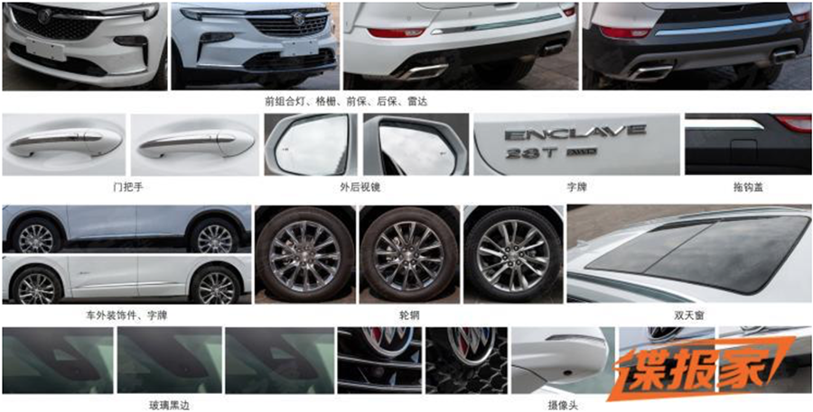 從此前工信部公開的新車申報圖來看,一款被命名為ENCLAVE(與昂科雷海外版同名)的SUV正是這次信息公開的主角——昂科旗。新車采用了一套此前未在別克家族中使用的設計語言,分體式前大燈組很好的與貫穿式飛翼LOGO相融合,并新車還將提供兩種不同風格的進氣格柵可選。