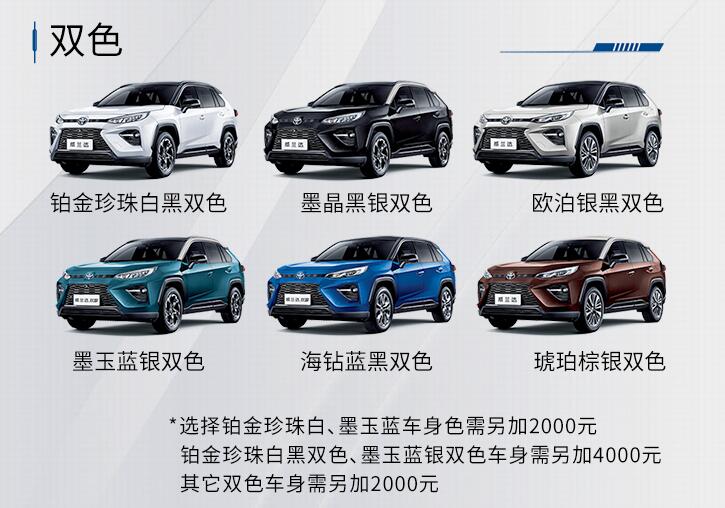 威蘭達(dá)采用與廣汽豐田SUV家族化命名方式,形成覆蓋主流SUV細(xì)分市場的“蘭達(dá)兄弟”系列,新車提供 “墨玉藍(lán)、鉑金珍珠白”等6種單色和“琥珀棕銀、歐泊銀黑”等6種雙色,共12種車身顏色選擇。