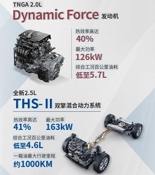 動(dòng)力方面,威蘭達(dá)2.0L 汽油版車型搭載熱效率達(dá)到40%的TNGA 2.0L Dynamic Force發(fā)動(dòng)機(jī),搭配模擬10速Direct Shift-CVT變速箱,綜合工況百公里油耗低至5.7L;2.5L雙擎版車型搭載的TNGA 2.5L Dynamic Force發(fā)動(dòng)機(jī)以及最新THS II混合動(dòng)力系統(tǒng),實(shí)現(xiàn)更高的41%熱效率,綜合工況百公里油耗低至4.6L,續(xù)航里程最高可達(dá)到1000公里。