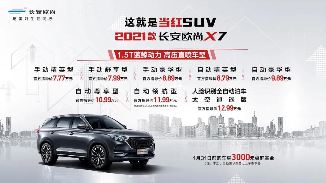 中國(guó)汽車(chē)新聞網(wǎng)12月30日訊 首月銷(xiāo)量即破萬(wàn),不到一年進(jìn)入年銷(xiāo)10萬(wàn)門(mén)檻,作為長(zhǎng)安歐尚汽車(chē)乘用化產(chǎn)品矩陣中最重要的產(chǎn)品之一,長(zhǎng)安歐尚X7于昨日完成了自己的年度改款。此次2021款歐尚X7共推出8款車(chē)型,售價(jià)區(qū)間為7.77-12.99萬(wàn)元。